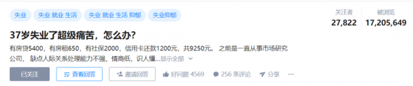 昨天在知乎上看到一条问题:37岁失业了超级痛苦,怎么办?