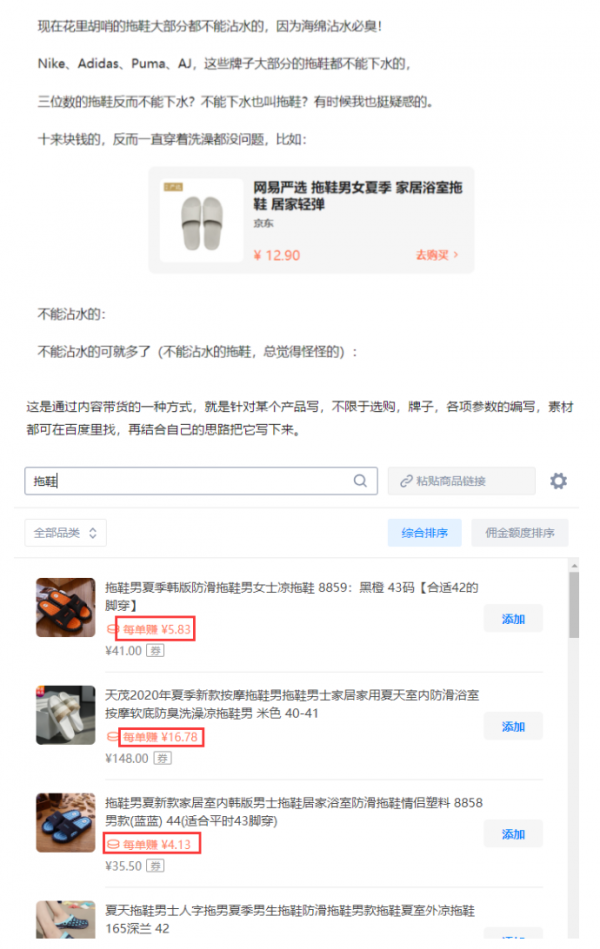 不同的产品,利润都不一样,像拖鞋这种产品,一单利润在4-16块之间,在分享之前要挑销量高的推,用户的心理通常会以这个数据来判断,到底哪款适合买。
