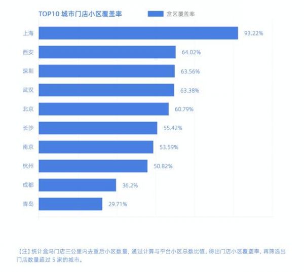 盒马在“诞生之城”发展迅速,无论在覆盖广度还是覆盖交叉深度方面,上海盒区房扩张趋势非常明显,且不断孵化多种业态。上海市中心城区覆盖率可达93.2%,居全国首位,环比去年增幅97%,假定趋势无显著变化,未来上海的“盒区边界”会消失。而上海作为样本城市,也代表了未来盒马在全国的发展趋势。
